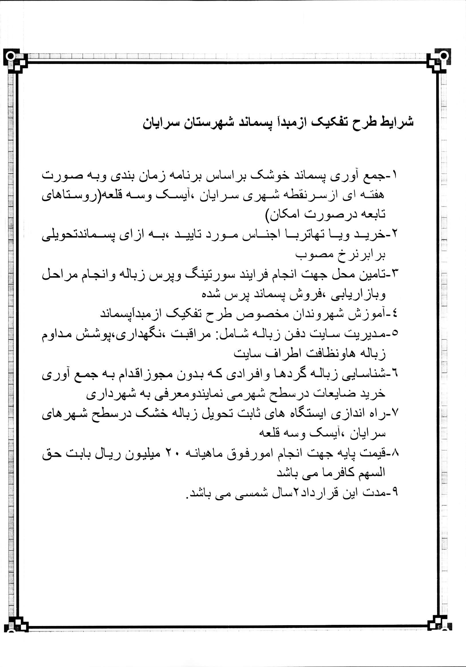 شهرداری سرایان درنظر دارد نسبت به واگزاری امورحوزه پسماند( تفکیک ازمبداَ پسماند شهرستان سرایان) به پیمانکاران واجد شرایط اقدام نماید.